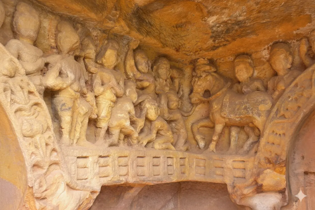 - Rani Gumpha (Queen’s Cave – Cave 1): The largest and most extensively carved cave, it is a double-storeyed monastery. Its friezes depict dramatic scenes, possibly from a historical or mythological drama. It is arguably the architectural and artistic peak of the complex.